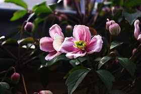 Je m'émerveille devant les clématites "Montana" dont mon coeur oscille entre les roses et la blanche.